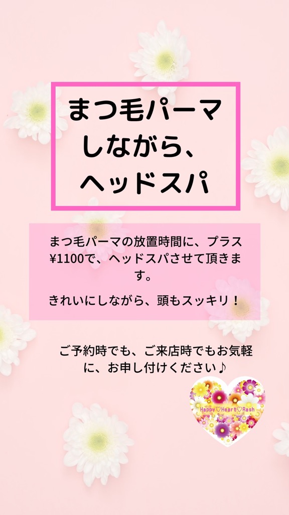 スパしたいけど、時間に余裕がない!そんな方は、まつ毛パーマ料金プラス¥1100で、薬剤放置時間にヘッドスパさせて頂きますので、お気軽にお声掛けください♪